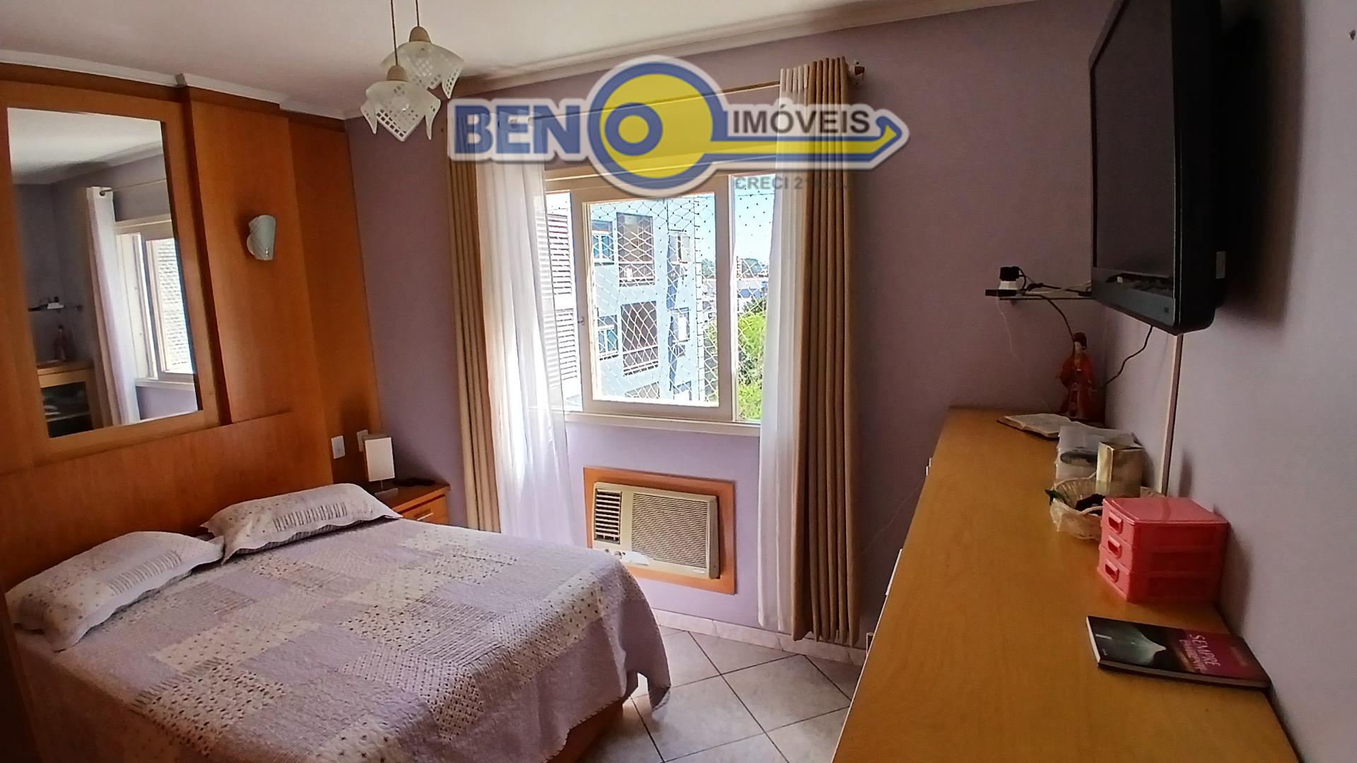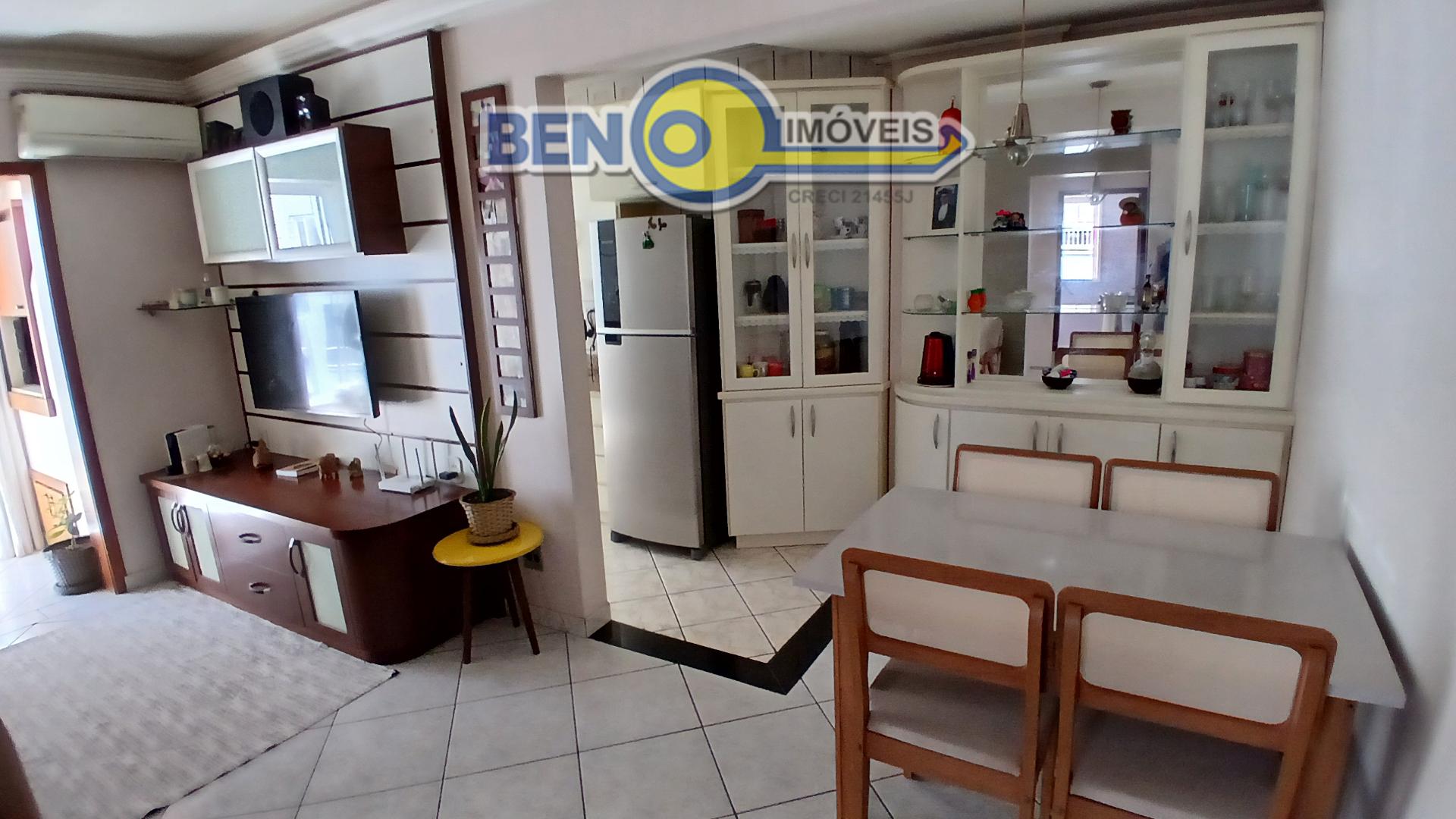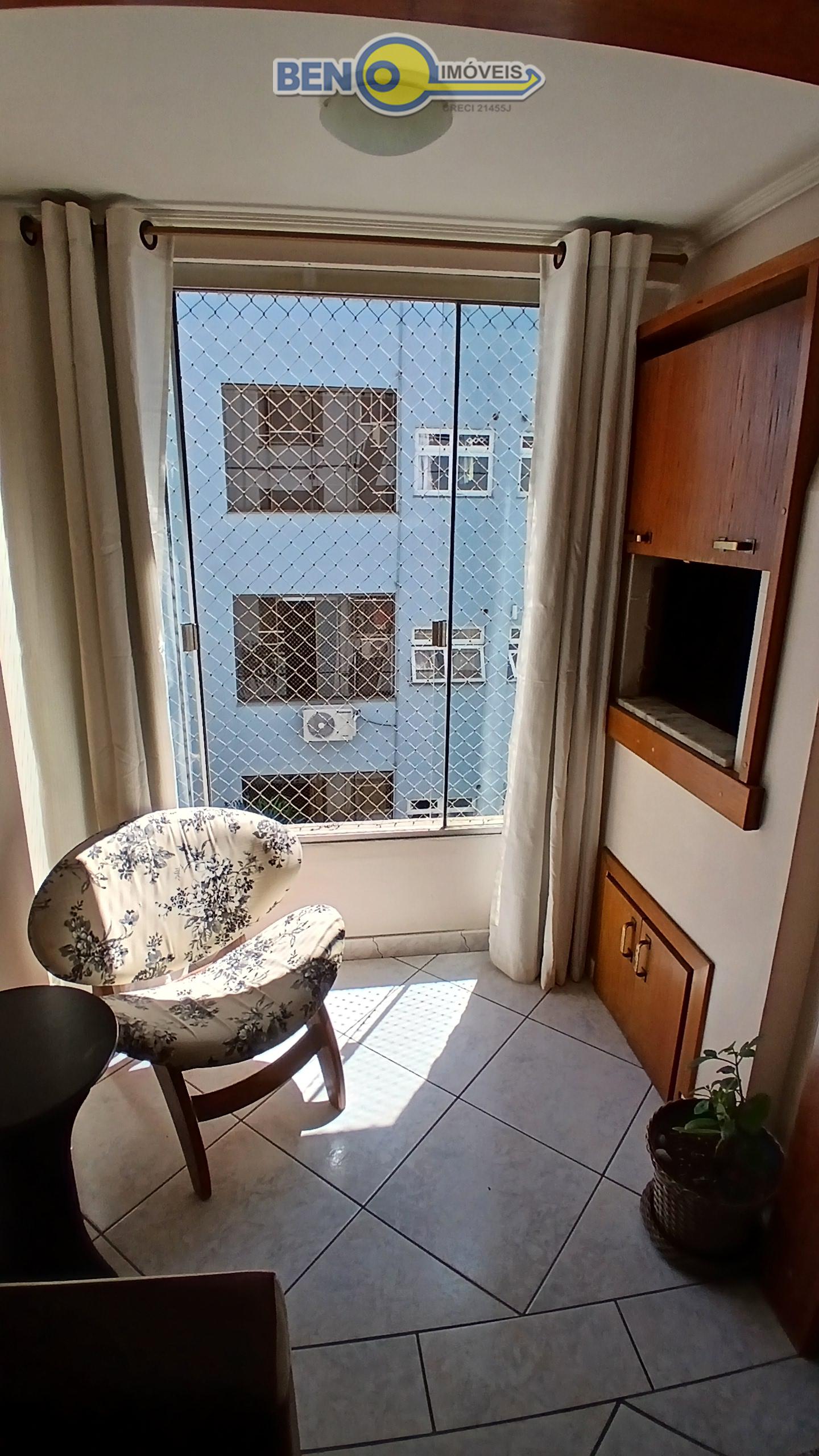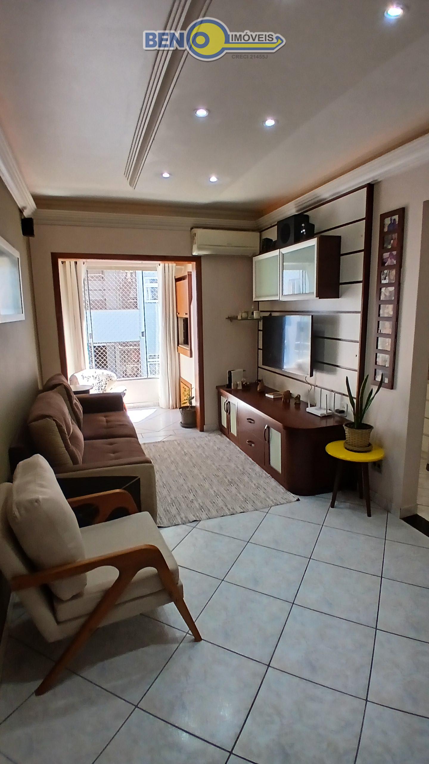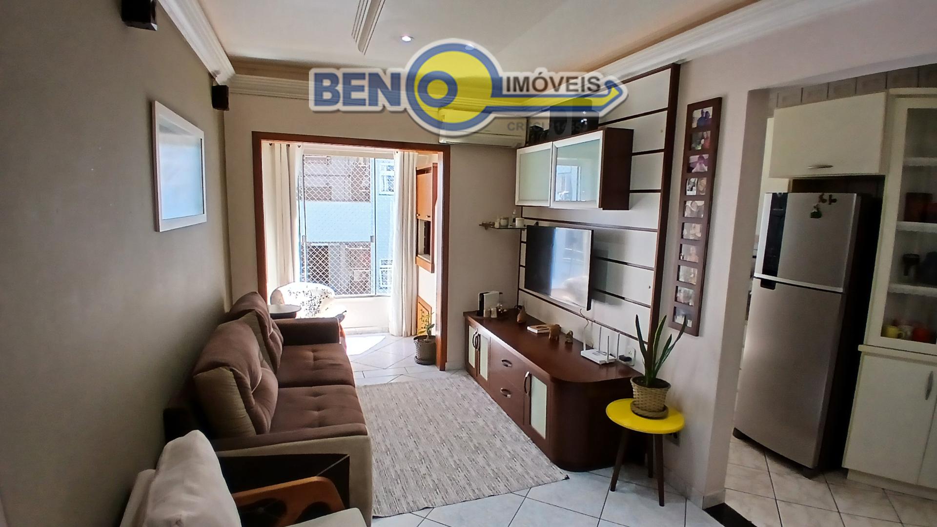 Beno Imóveis Vende Apartamento semi mobiliado com 2 dormitórios, sala de estar e jantar com churrasqueira, banheiro social, cozinha e área de serviço separada, churrasqueira, teto em rebaixo de gesso. Possui 1 vaga de garagem coberta. Ficam no imóvel: Armário da sala, cozinha, banheiro, roupeiro do quarto e cama sem colchão, 2 ar condicionado gás e luz individual
