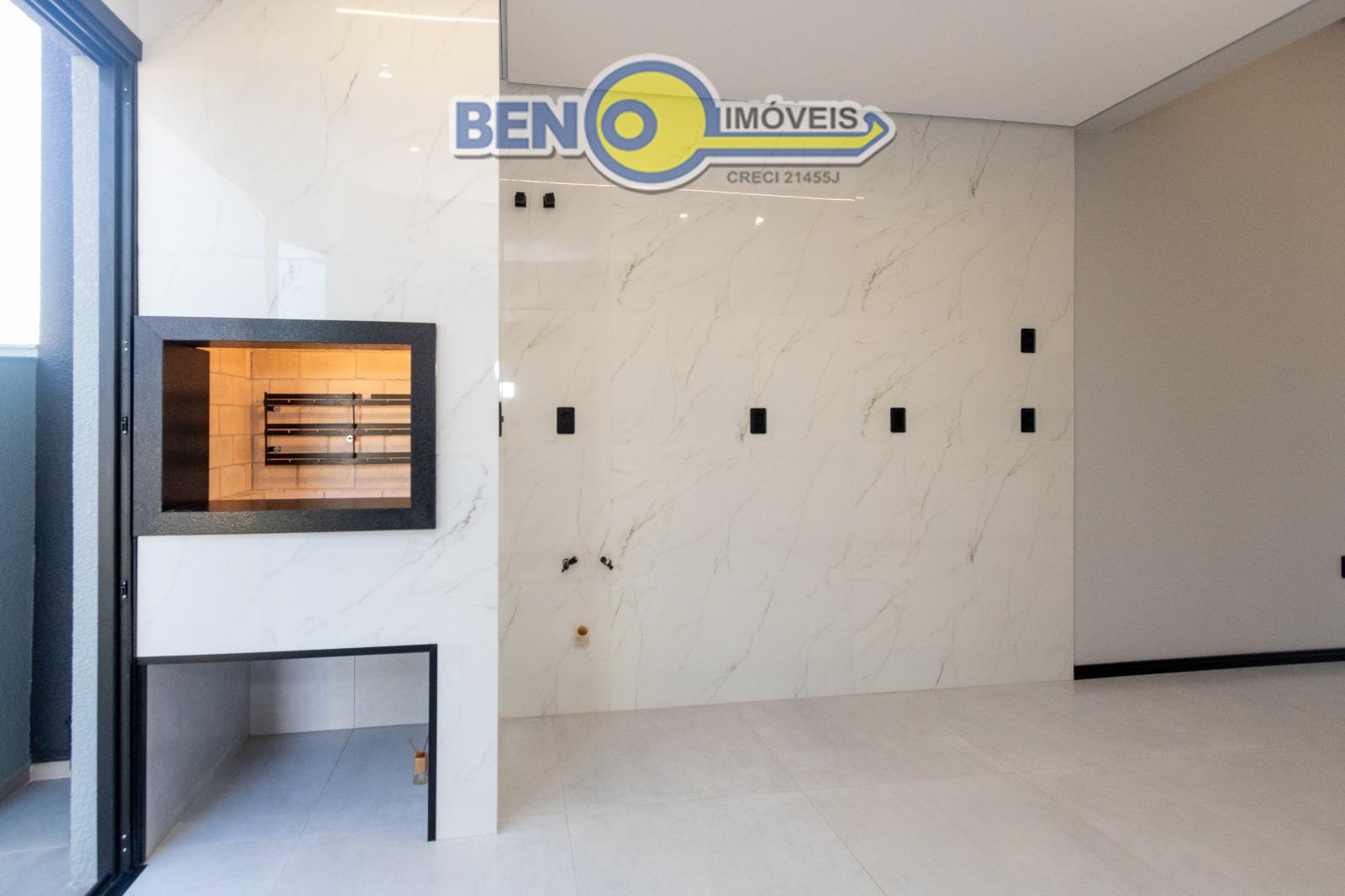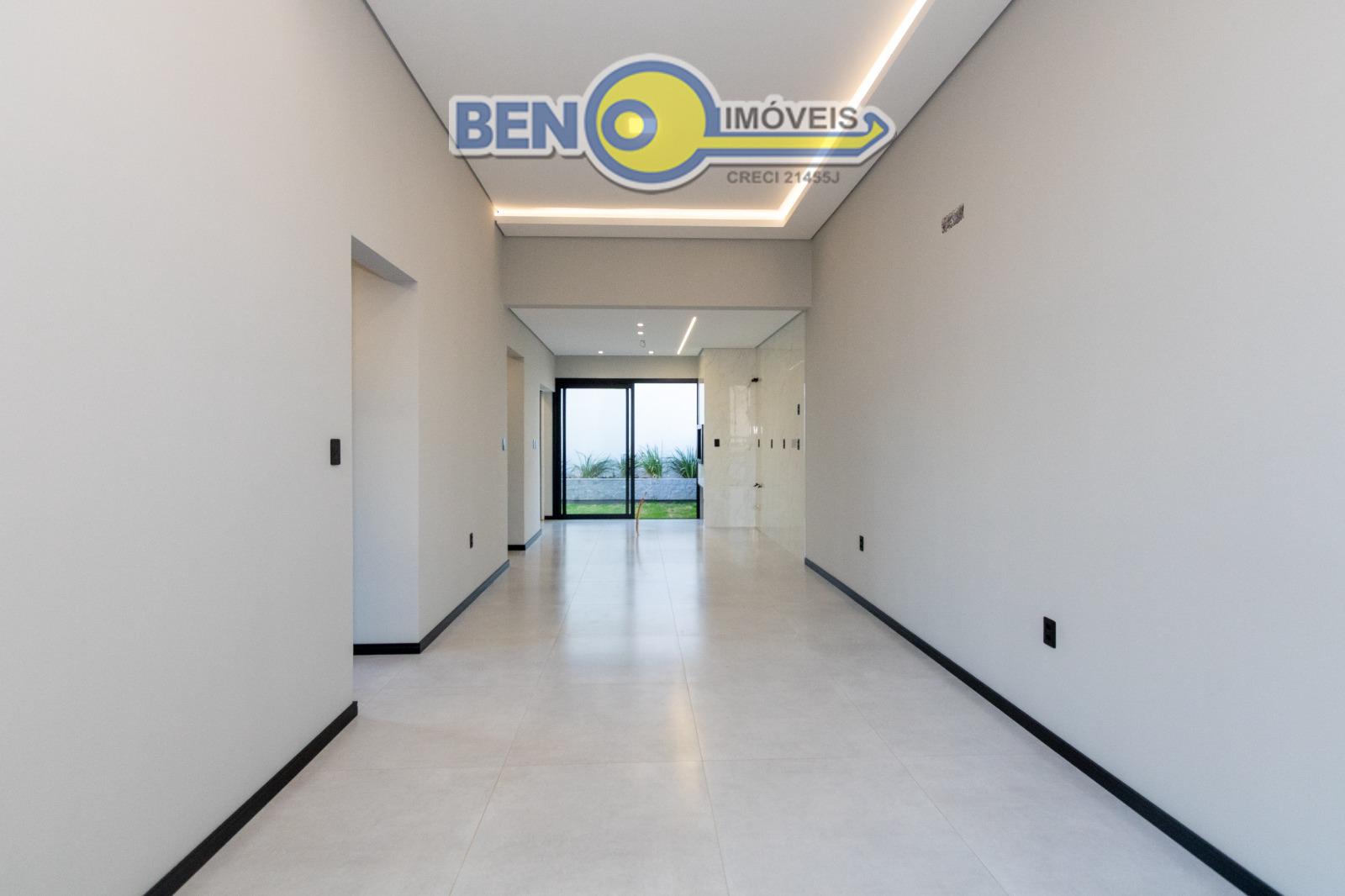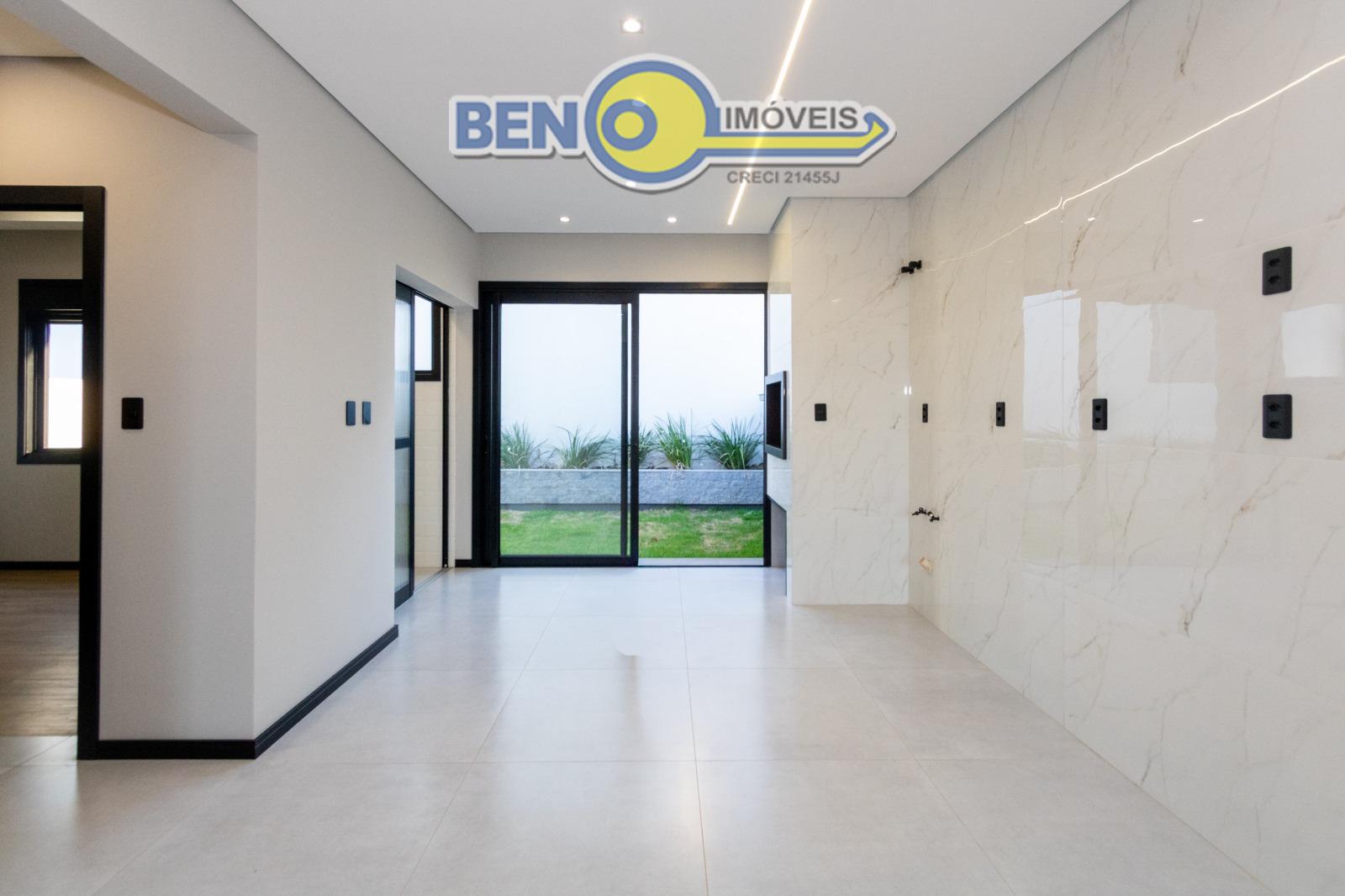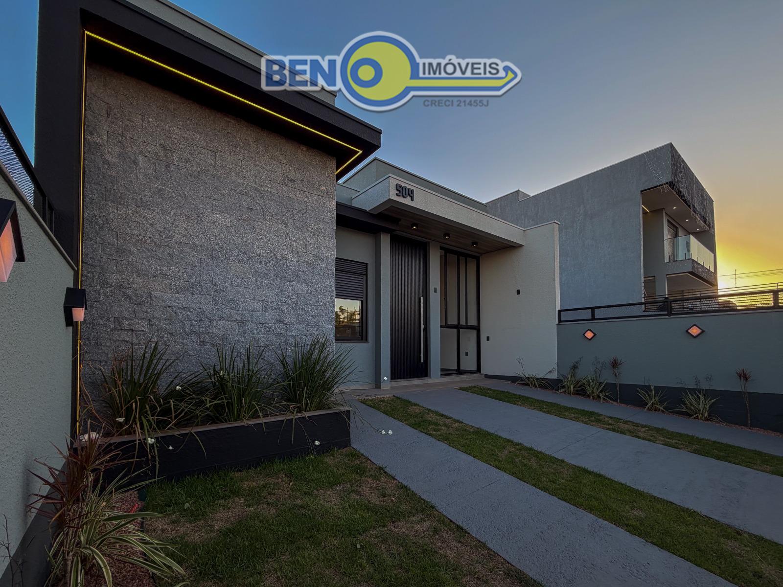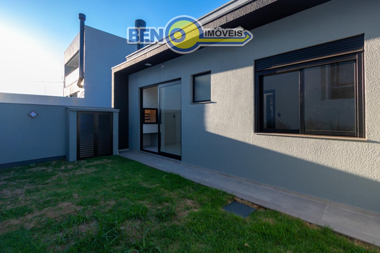 Casa três dormitórios sendo uma suíte com espaço para closet, banheiro social, estar e jantar integrados, cozinha ampla, churrasqueira, lavanderia e amplo pátio com garagem para dois carros. Imóvel tem 93m² de área construída em um terreno de 8x22,5 Acabamento alto padrão com a fachada imponente, esquadrias pretas com persianas, água quente, piso vinílico nos dormitórios. Pátio com espera para instalação de piscina e portão de contrapeso.