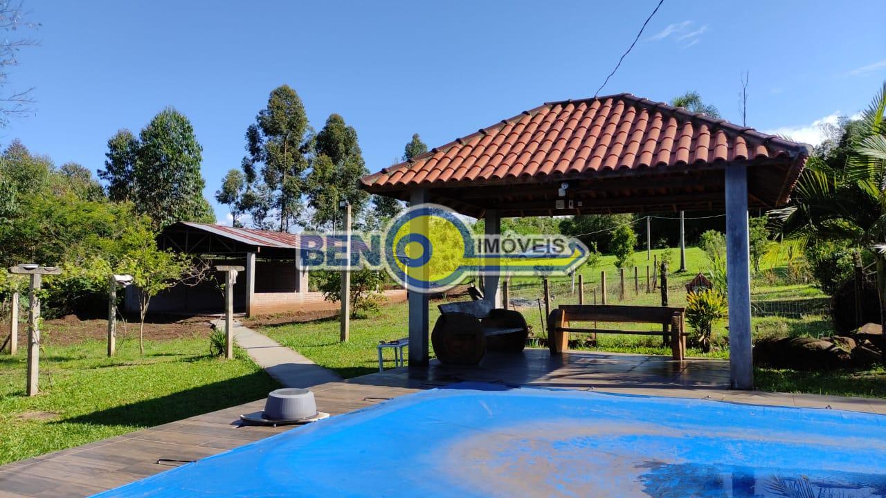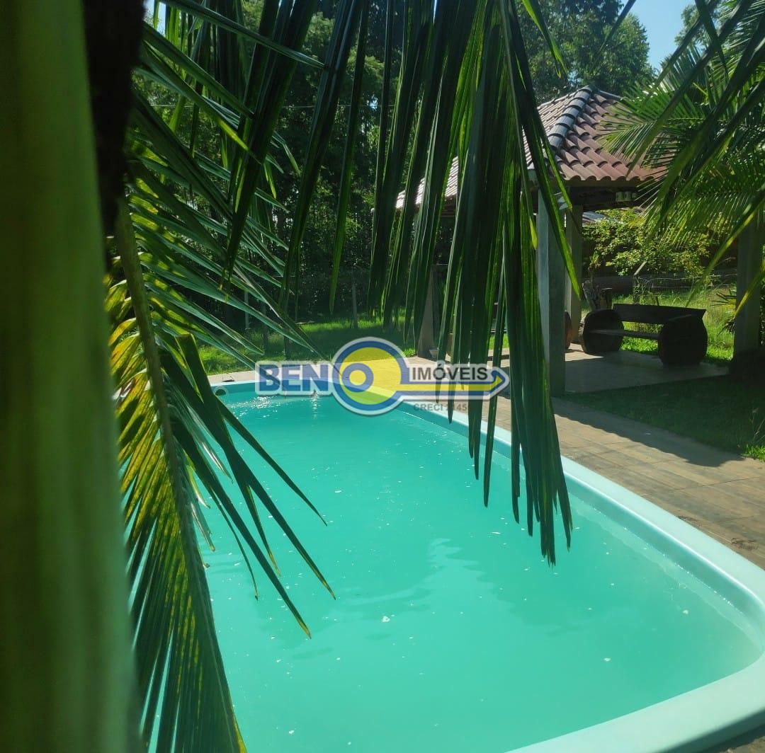 Beno imóveis vende excelente sítio com 5 mil metros quadrados com casa de 4 quartos, 3 banheiros, sala cozinha com churrasqueira e fogão campeiro, salão de festas e piscina.